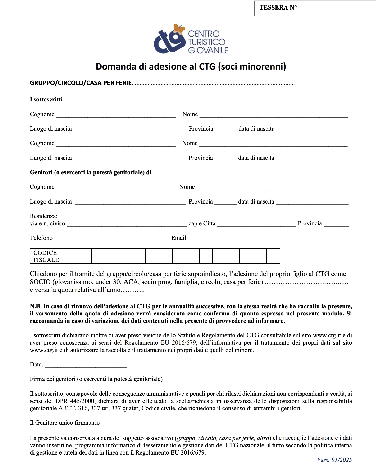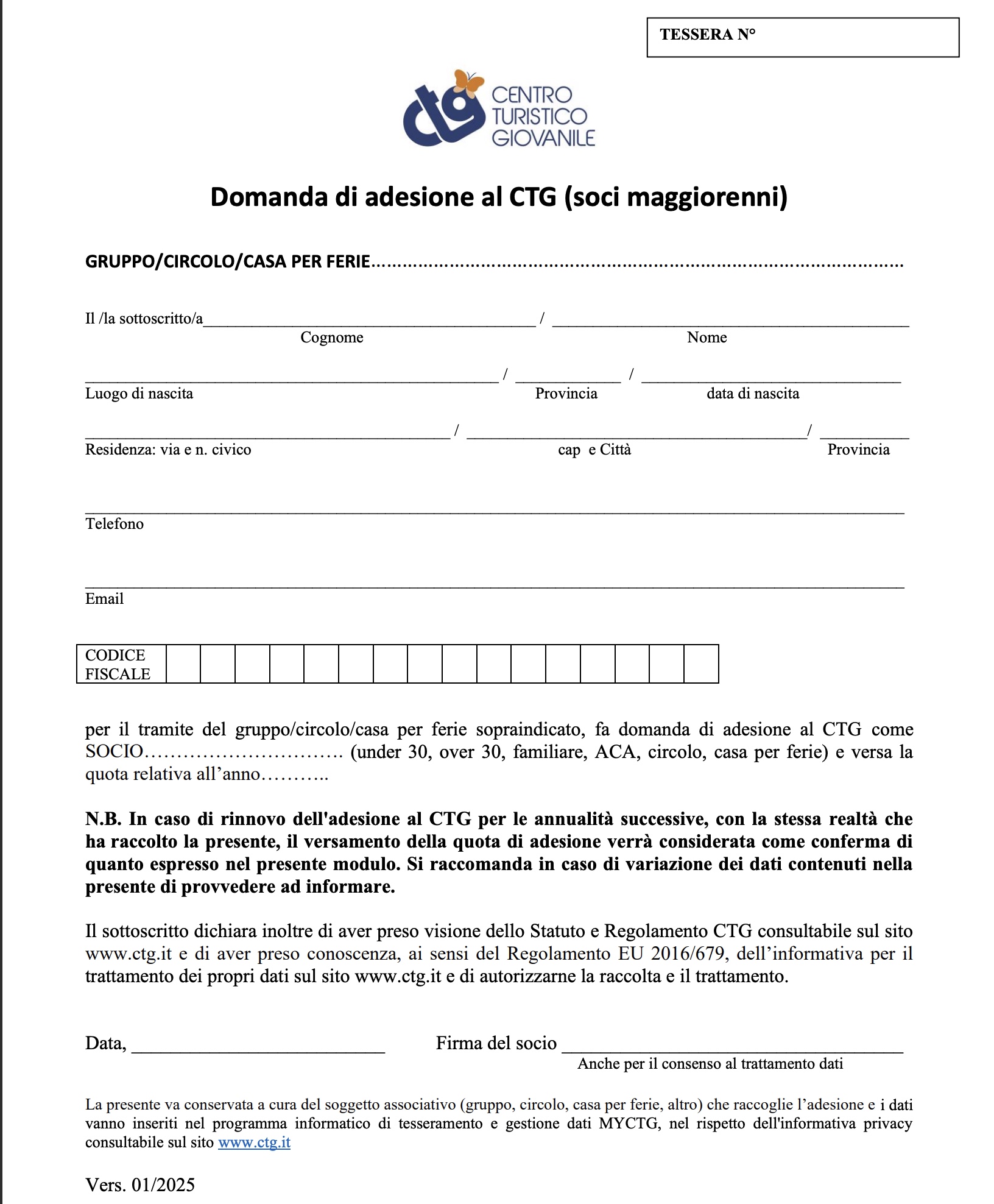 Entrambi i moduli richiedono la presa visione dello Statuto CTG e dell’informativa privacy disponibili sul sito nazionale.