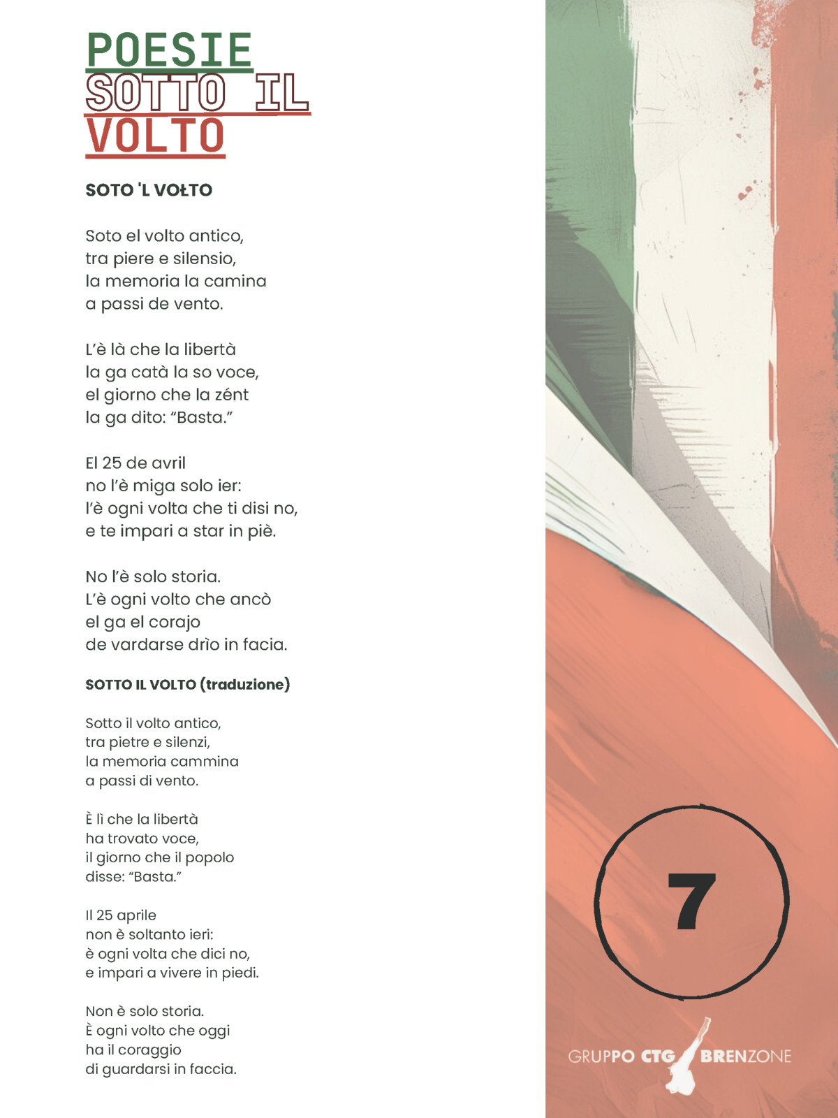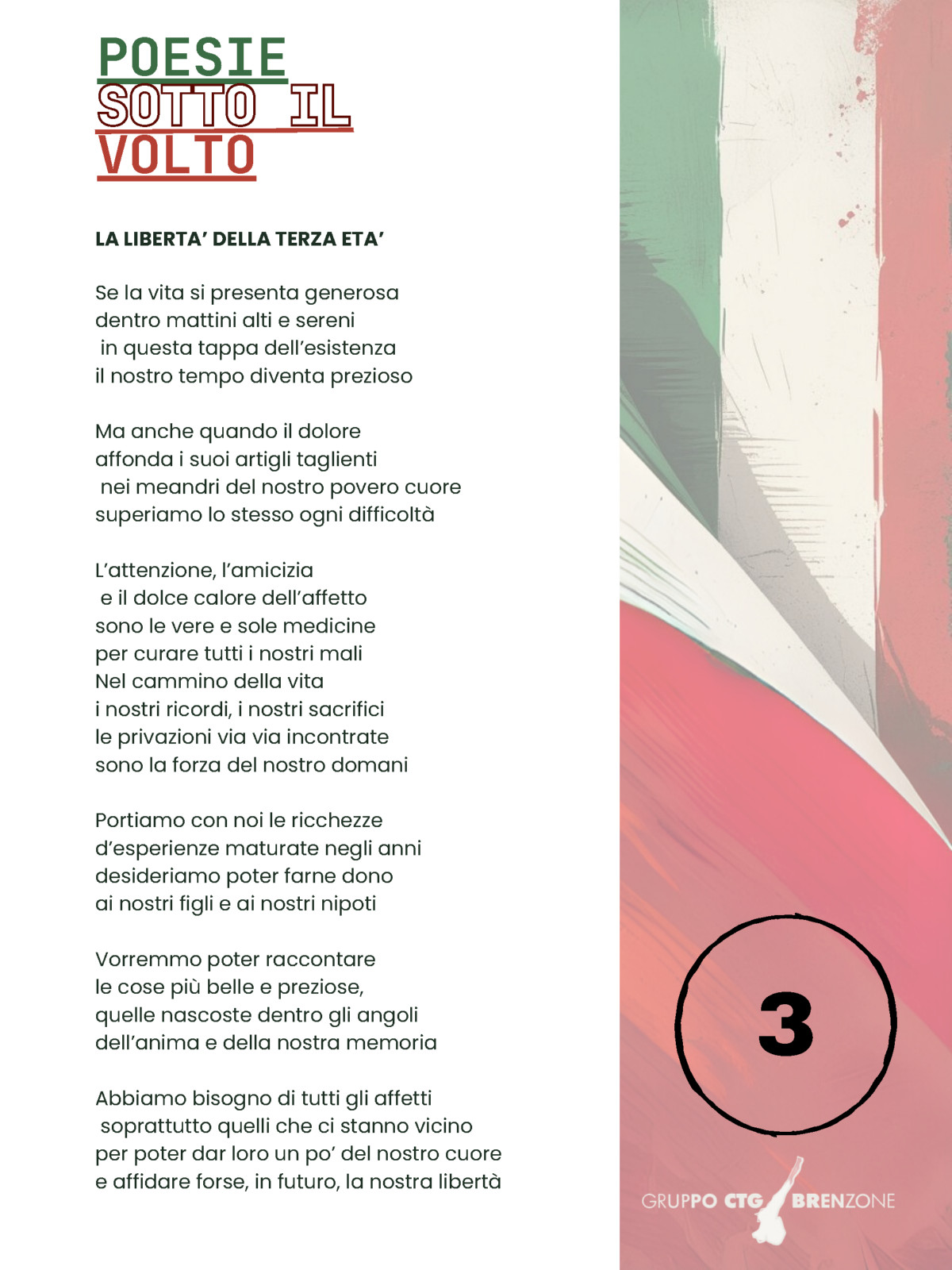 Poesie sotto il volto” è un’iniziativa del CTG BRENZONE nata nel 2013: un concorso di poesie a tema che vengono esposte in mostra nei mesi di luglio e agosto sotto uno dei suggestivi volti di Brenzone.