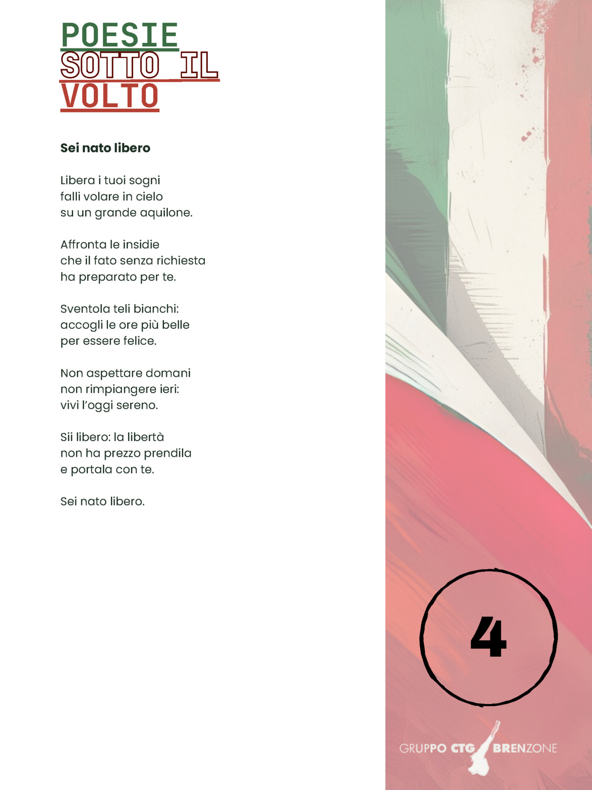 Il 2025 vedrà gli aspiranti poeti impegnati con il tema della liberazione, ispirati da un momento cruciale: la fine della guerra e l’inizio di un tempo nuovo, di libertà e speranza. Ma liberarsi non è solo un fatto storico: è lasciare andare un peso, superare una paura, rialzarsi dopo un’ingiustizia. È il coraggio di cambiare e ricominciare.