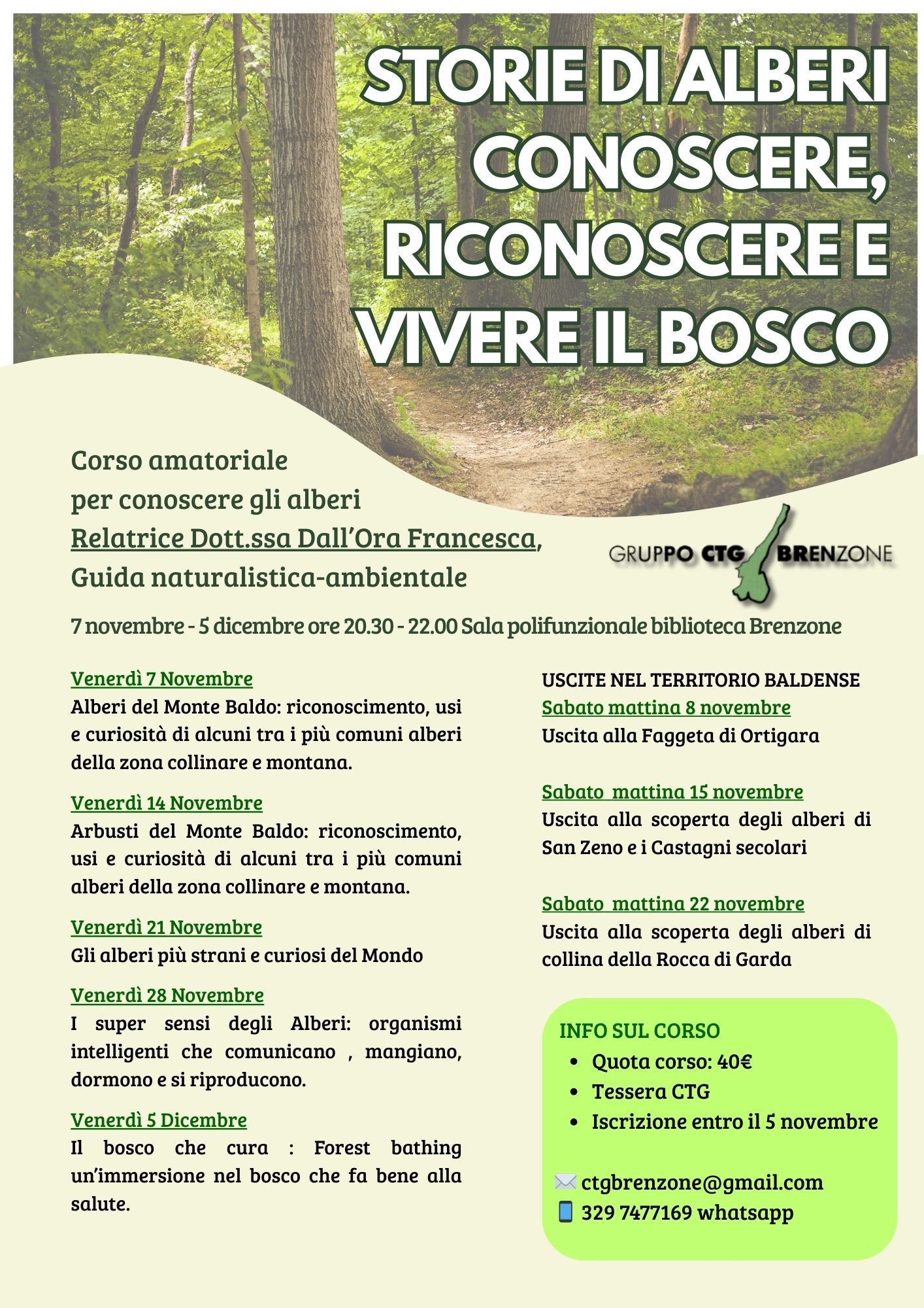 L’autunno è arrivato e con lui tante nuove proposte del CTG Brenzone! Serate, incontri e corsi da non perdere, pensati per condividere insieme momenti di cultura, curiosità e convivialità. Vi...