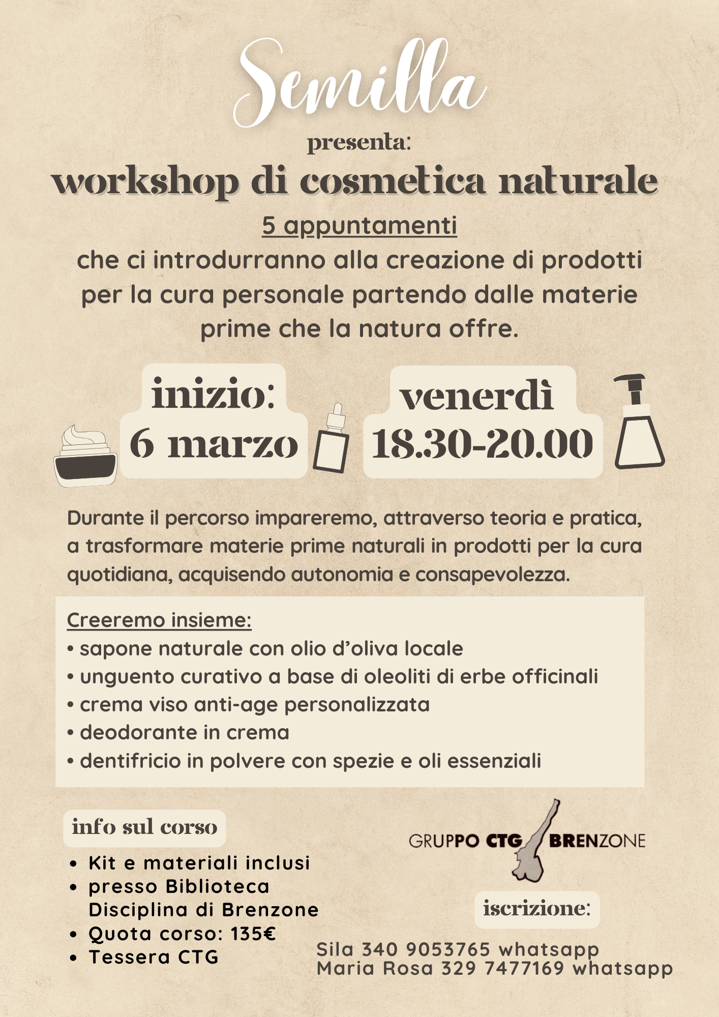 Il workshop è un’esperienza immersiva nel mondo della biocosmesi naturale, basata sull’uso di ingredienti puri, vegetali e rispettosi dell’ambiente. Semilla unisce tradizione e innovazione,...