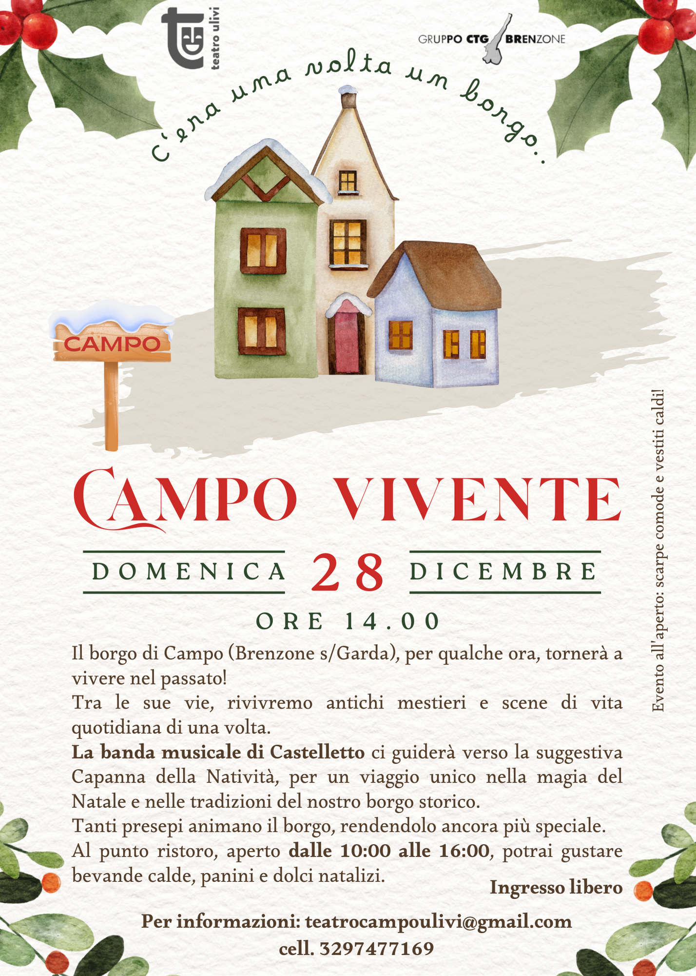Attraverso scene di vita quotidiana e antichi mestieri riportiamo in vita la memoria e l’anima di Campo. Il Corpo Bandistico di Castelletto di Brenzone, diretto dal maestro Giacomazzi, ci guiderà...